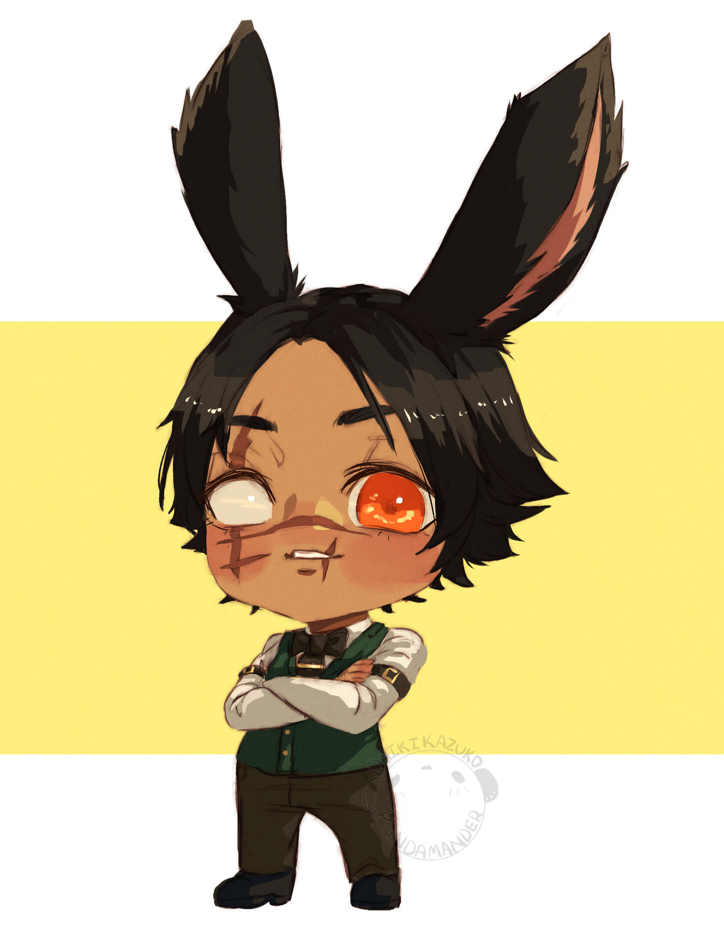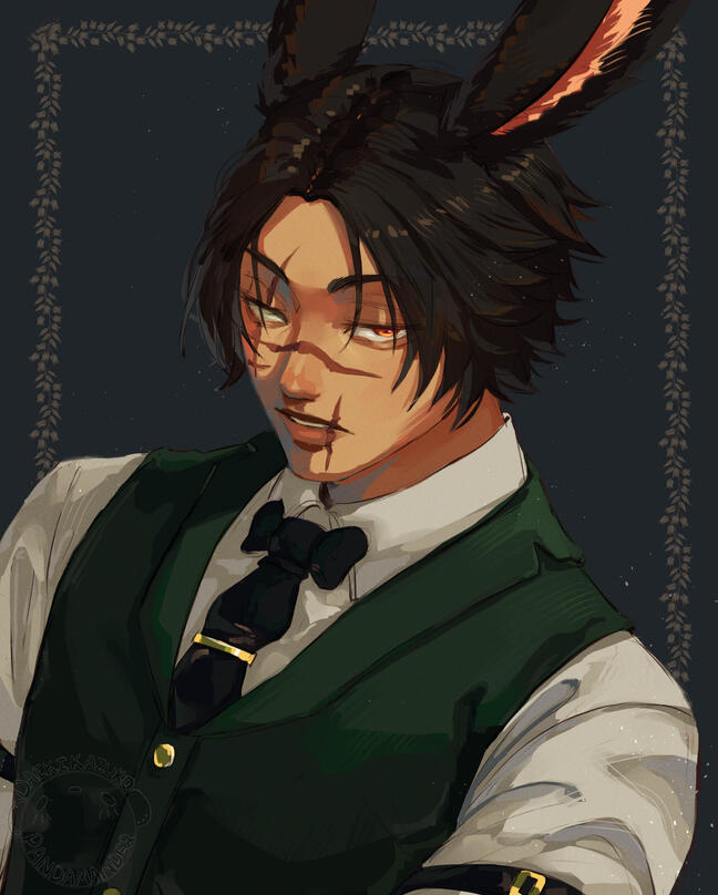 • —– ٠ ✤ ٠ —– • · ✤ ٠ · —– • · • —– (wip lore) ٠ ✤ ٠ —– • · ✤ ٠ · —– • · • —– ٠ ✤ ✤ ٠ —"Blade with whom I have lived, blade with whom now I die. Serve right and justice one last time. Seek one last heart of evil, still one last life of pain. Cut well old friend, and then farewell."Born under the humid sun within the Gilmore jungle, Odaros only remembers a small portion of his life within the forest. The kit he remembered himself as was always curious of what mysteries lies outside of the forest. When his chosen Warden finally came to take him away from the safety of the forest. Odaros never saw what he had once called home ever again.Spending several season being obedient and serving the forest under his Warden, he was able to seek solitude and forget the grasp of that life. He never desired on coming back. Leaving the forest, he knew that he will soon face the same fate as other males."We were raise to live and die alone. That is a fate I will share with every Viera. Nothing will change that."Starting a new life ahead of him, he soon realized it was more of a struggle than anything. No longer did he have a supportive community, until he stumbled upon a small farm land on the outskirts of Ul'dah. Where two lalafells soon discover a barely mature viera sleeping amongst their sheep. Omahu Lelimahu and Yayari Yari, farmers who took in the helpless Viera and later gave Bubu Hrafnes his name. Unable of finding work and maybe a home for himself, he stuck around for several seasons with the old couple. With no children of their own, Bubu became the son they needed to help around on the farm. Though in return, Bubu, sort of, learned some social skills from the two of them.In due time, his stay with Omahu and Yayari was cut short. A Viera by the name of Ranni, noticing Bubu's time and effort amongst the gladiators guild and accompanying him through a few of his travels. She decided to open up a new home and opportunity. Offering to up a spot within their free company, seeing that his skills would provide a good service to them. If you asked Bubu himself though, the training he had done with Ranni? He will say the trials of passage were similar to her brutal training.A new journey is ahead of him as he slowly meets new adventurers who have came a long and joined.Though, that was all merely in the pass of his youth. Several years down the road and new scars adding to each battle in his life, he now lives a peaceful...well now chaotic life if we are being honest. His adventuring days have come to an end for the moment as he caters to crowd of patrons at Seaside as a head butler. Working alongside Keres, running the circus. Heading to an empty home.